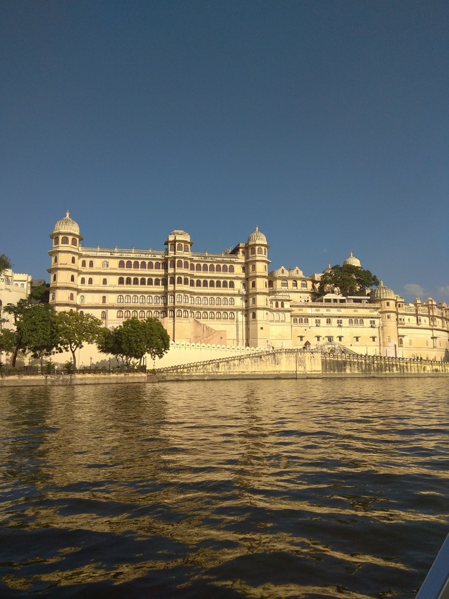 (The view of City Palace from the waters, Boating at Lake Pichola)