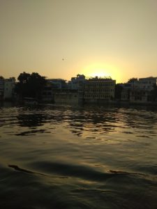 (Boating with glimpse of sunset at Lake Pichola. Photograph by Mums and Stories).