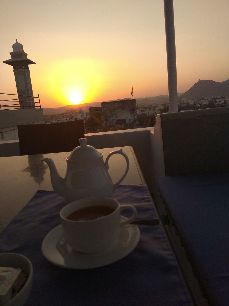 (Spend an evening on one of the roof top cafes with a book and cup of tea and you have your perfect vacation set in place). Sunset at Udaipur.