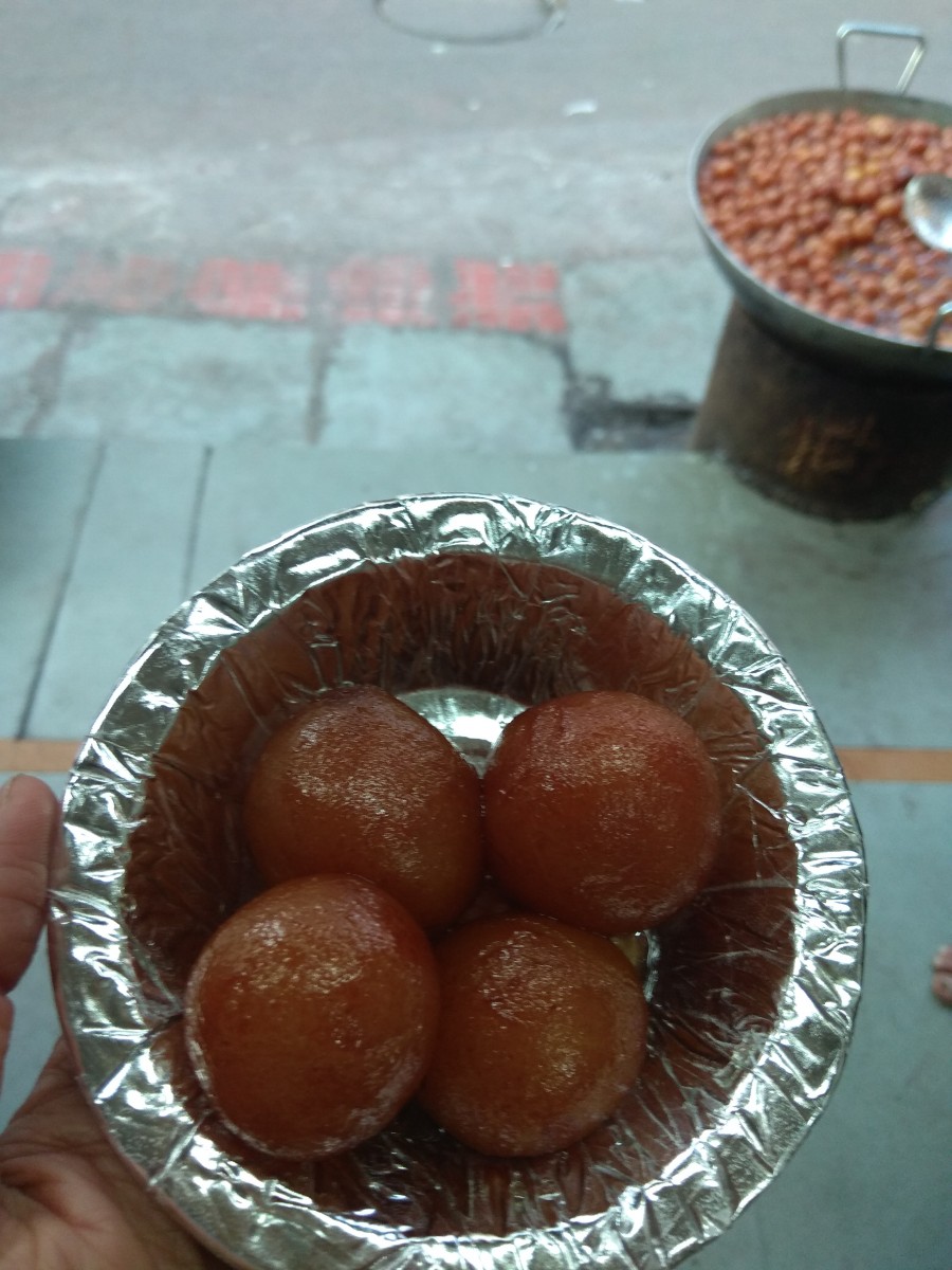 ( Sweet delicacies are integral to Rajasthani cusinise and we had the delicious, hot gulab jamuns from a street vendor).